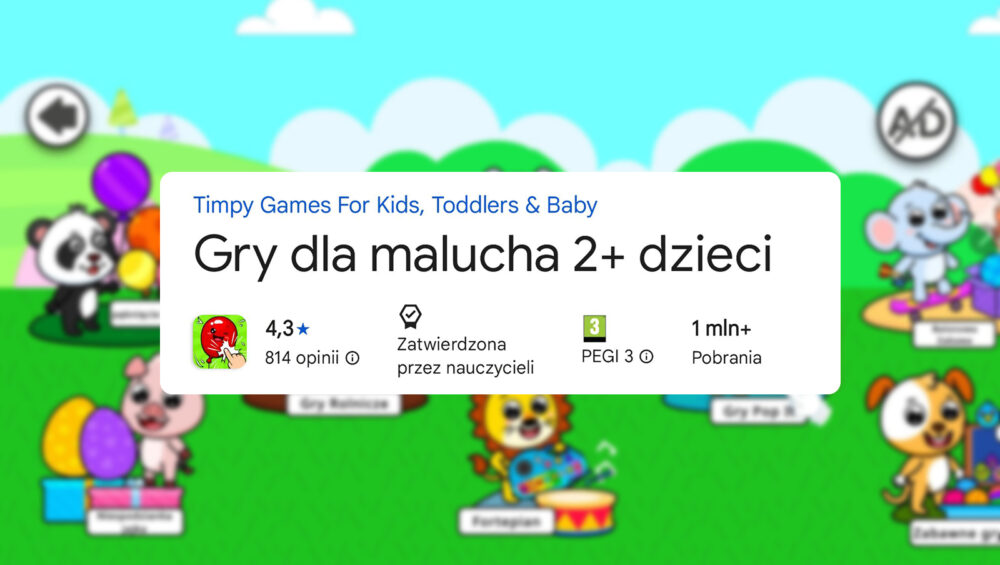 Dziś pod lupę bierzemy aplikację Gry dla Malucha 2+ Dzieci Baby Word, która, pomimo 4.3 gwiazdki, 814 opinii i statusu „zatwierdzona przez nauczycieli” (oraz 1 000 000 pobrań), od razu na ekranie głównym zaskakuje paskiem z reklamami innych gier tego samego producenta. Czy ta aplikacja oferuje wartościową zabawę dla najmłodszych, czy też reklamy i niejasności zakłócają jej edukacyjny potencjał?