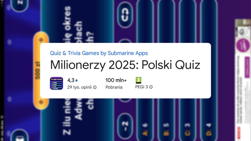 Milionerzy 2025 Polski quiz to prosta, ale skuteczna adaptacja popularnego teleturnieju, która dostarcza rozrywki i wciąga na długie godziny. Mimo natrętnych reklam i przestarzałej grafiki, gra ma duży potencjał na Smartstolik, szczególnie w grze grupowej, gdzie dzieci mogą wspólnie myśleć nad odpowiedziami.Gra Milionerzy 2025 Polski quiz to prosta, ale zaskakująco wciągająca adaptacja popularnego teleturnieju. Mimo że grafika nie jest najnowsza, aplikacja cieszy się dużą popularnością, o czym świadczy 100 milionów pobrań i 4.3 gwiazdki w sklepie. Dzieci szczególnie upodobały sobie ten tytuł na interaktywnym stole.