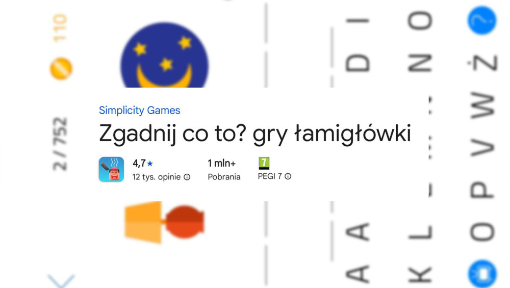 Aplikacja Zgadnij, co to? z oceną 4.7 gwiazdki i 1 milionem pobrań to prosta, ale wciągająca gra logiczna, która opiera się na popularnej formule zagadek obrazkowych. Jej minimalistyczny interfejs i proste zasady sprawiają, że jest idealna do szybkiej rozrywki.