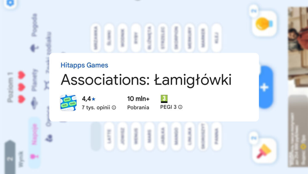 Aplikacja Associations (w sklepie znana prawdopodobnie jako „Skojarzenia”), z dobrą oceną 4.4 gwiazdki i 10 milionami pobrań, to gra logiczna, która skutecznie rozwija myślenie asocjacyjne i umiejętność kategoryzowania.