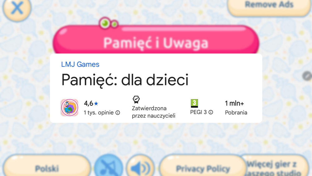 Gra Pamięć dla Dzieci z oceną 4.6 gwiazdki i 1 milionem pobrań to cyfrowa platforma do treningu umysłu dla najmłodszych. Aplikacja oferuje zestaw mini-gier, które mają na celu wspieranie rozwoju poznawczego. Przyjrzyjmy się bliżej, jak wypada w praktyce.